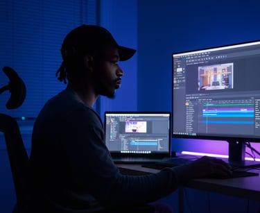 En studio, la magie opère. Montage, étalonnage, motion design et mixage sonore s'unissent pour donner rythme et émotion à votre film. Le résultat : une production percutante, prête à impacter votre audience.